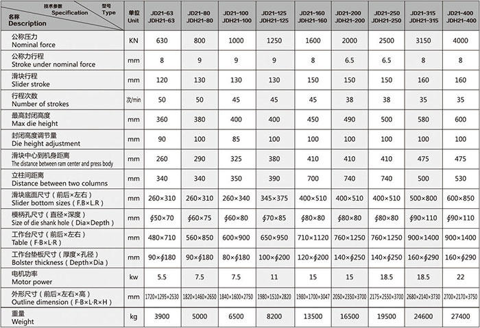 采用整體鑄鐵機(jī)身,不可傾斜,廣泛應(yīng)用于沖孔、落料、彎曲、淺拉伸、成型等冷沖壓工藝。